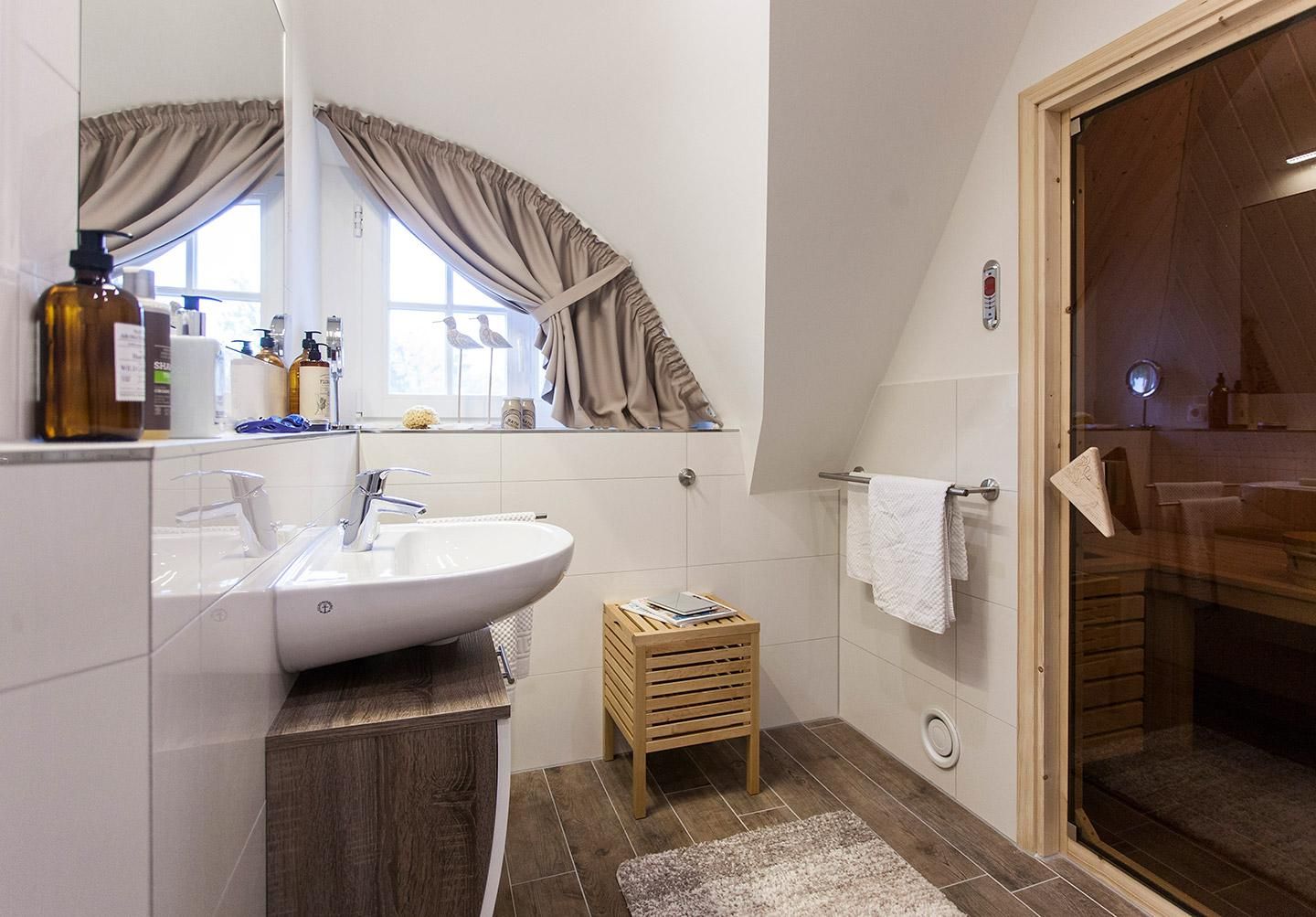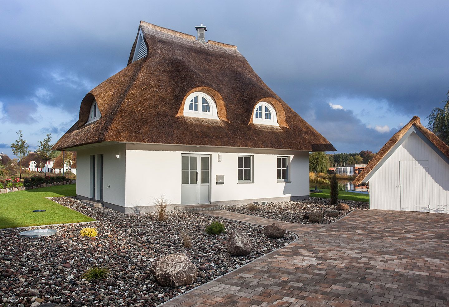 Dieses wunderschöne Ferienhaus mit traditionellem Reetdach, ortstypischer Feldsteineinfriedung und 740 m2 großem Grundstück am Teich liegt in einer neuen Ferienhausanlage. Es bietet großzügig Platz für sechs Feriengäste (drei Schlafzimmer mit Doppelbett, davon eins im EG) und verfügt über zwei hochwertige Bäder und ein Gäste-WC, davon ein Bad mit Badewanne und Dusche, ein Bad mit Dusche und Sauna.
