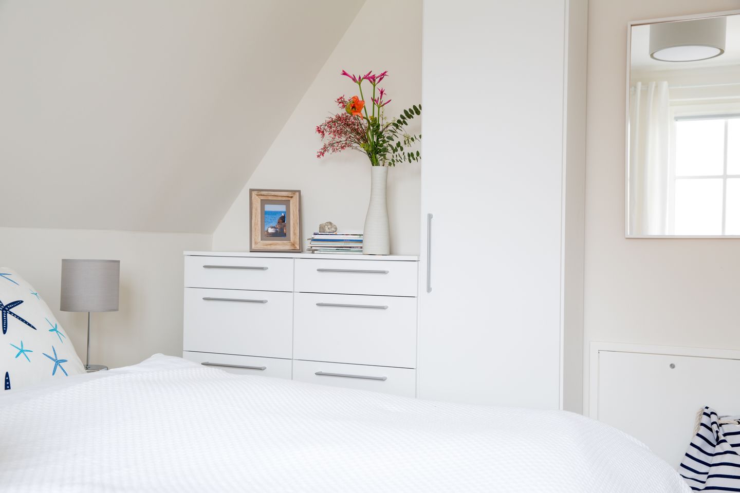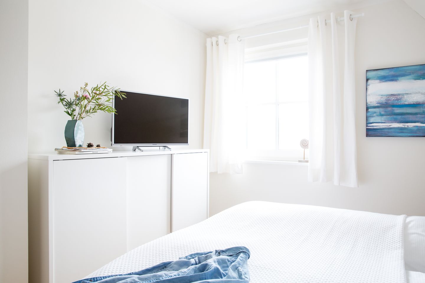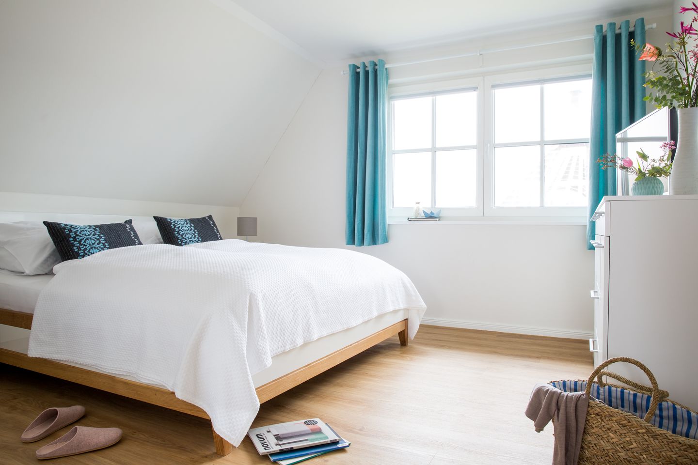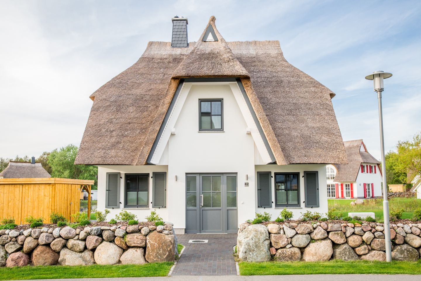 Dieses modern ausgestattete Ferienhaus mit traditionellem Reetdach, Fensterläden, ortstypischer Feldsteineinfriedung und 656 m2 großem Grundstück am Teich liegt in einer neuen Ferienhausanlage. Es bietet viel Platz für vier Feriengäste (zwei Schlafzimmer mit Doppelbett und TV) und verfügt über einen großzügigen Wohn-Essbereich, ein einladendes Wannen-/Duschbad mit WC und Sauna im OG sowie ein Gäste-WC im EG.