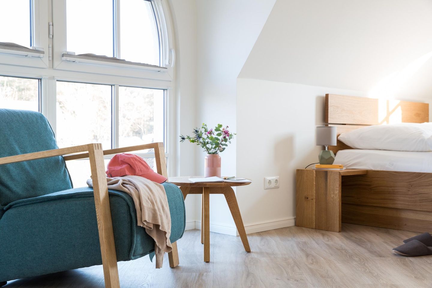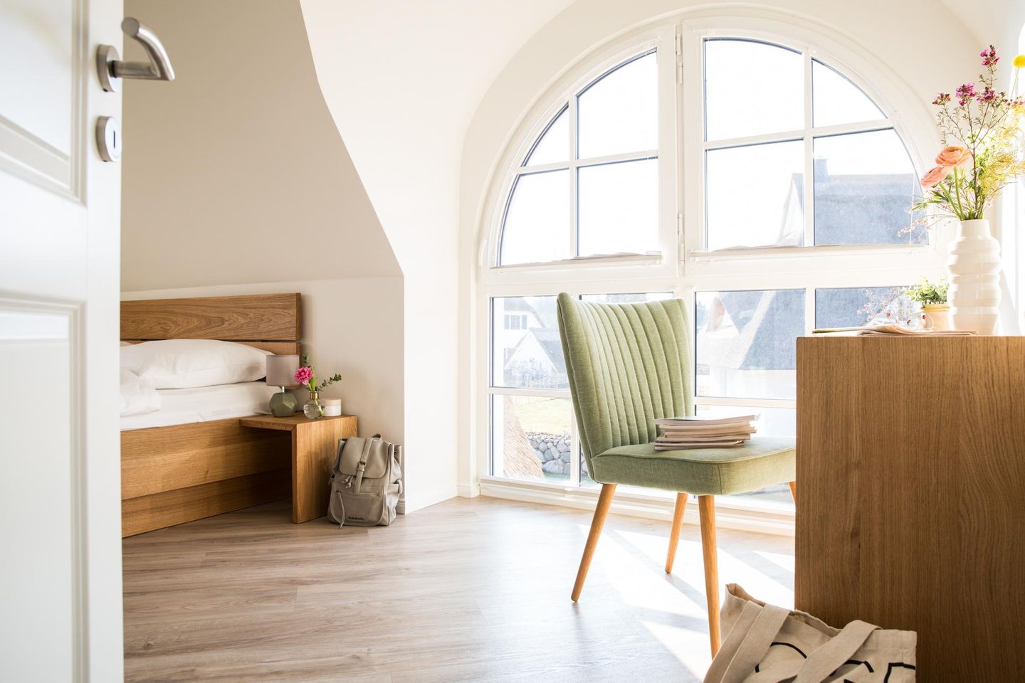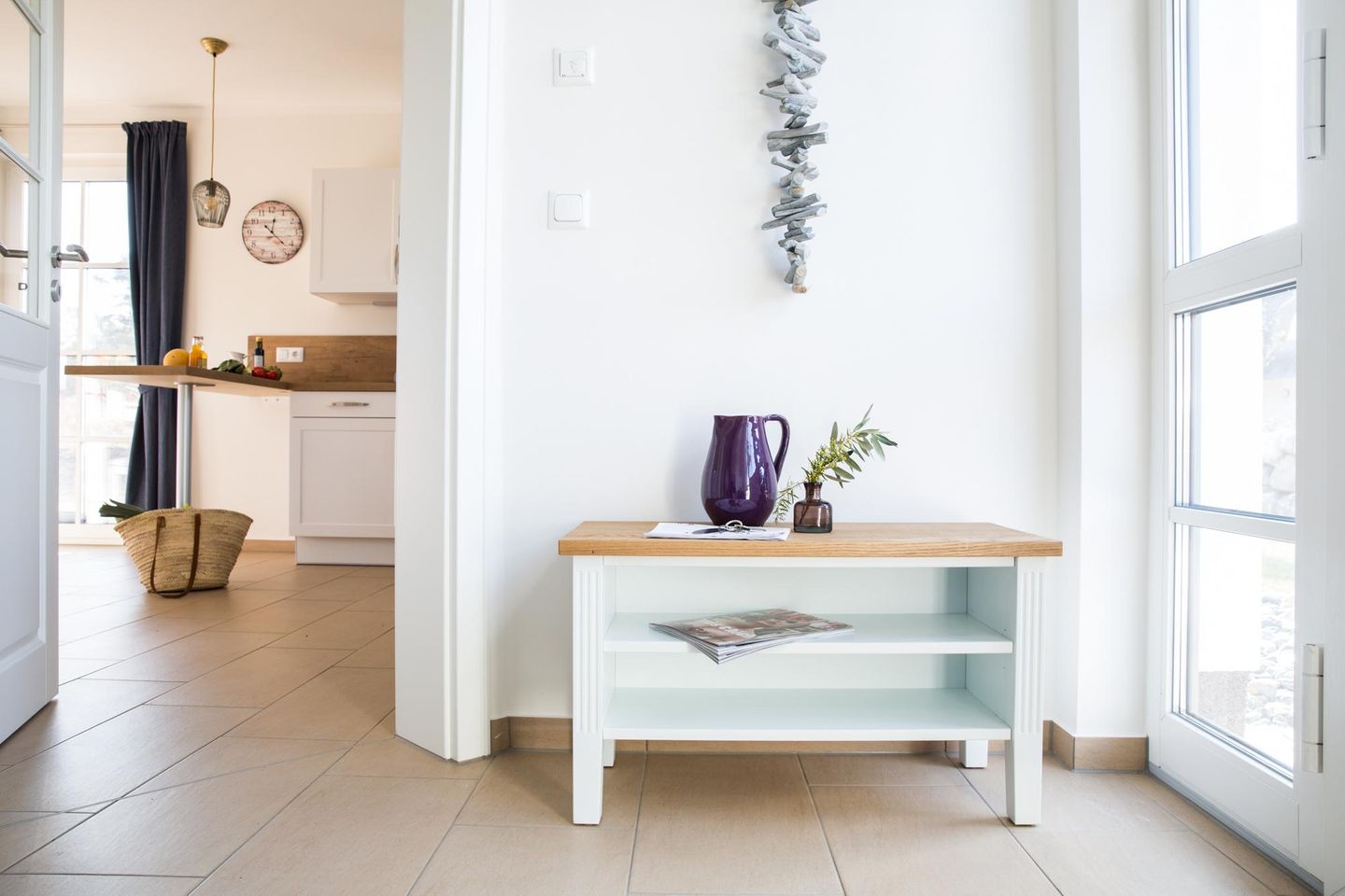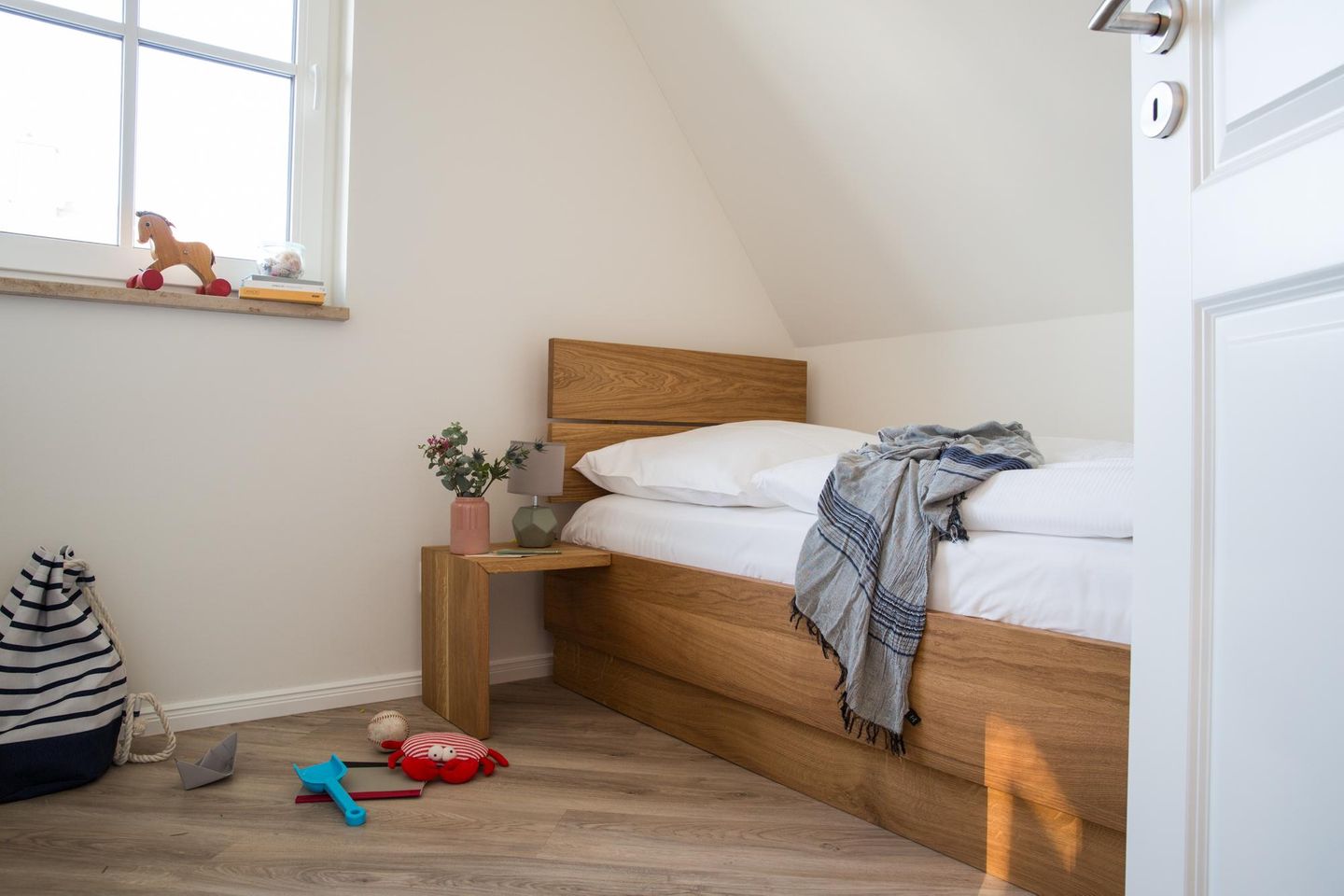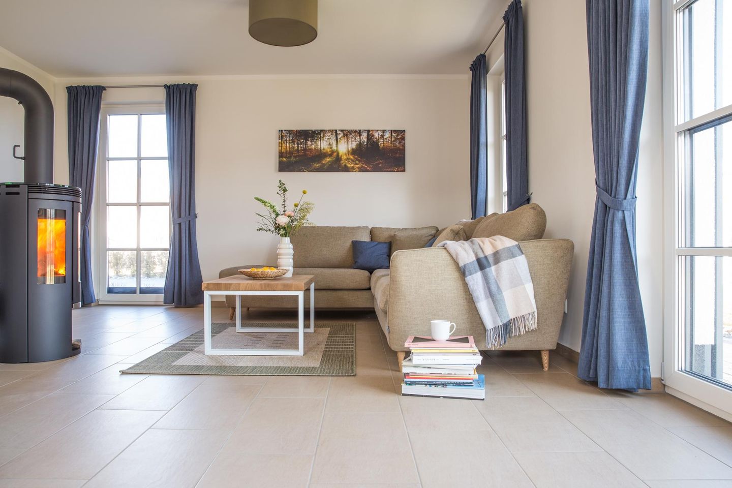 Das wunderschöne Ferienhaus mit traditionellem Reetdach, Fensterläden, ortstypischer Feldsteineinfriedung und 653 m2 großem Grundstück liegt in einer neuen Ferienhausanlage. Es bietet großzügig Platz für fünf Feriengäste (zwei Schlafzimmer mit Doppelbett, eins mit Einzelbett) und verfügt über ein Duschbad mit WC und Sauna im OG sowie ein Gäste-WC im EG.