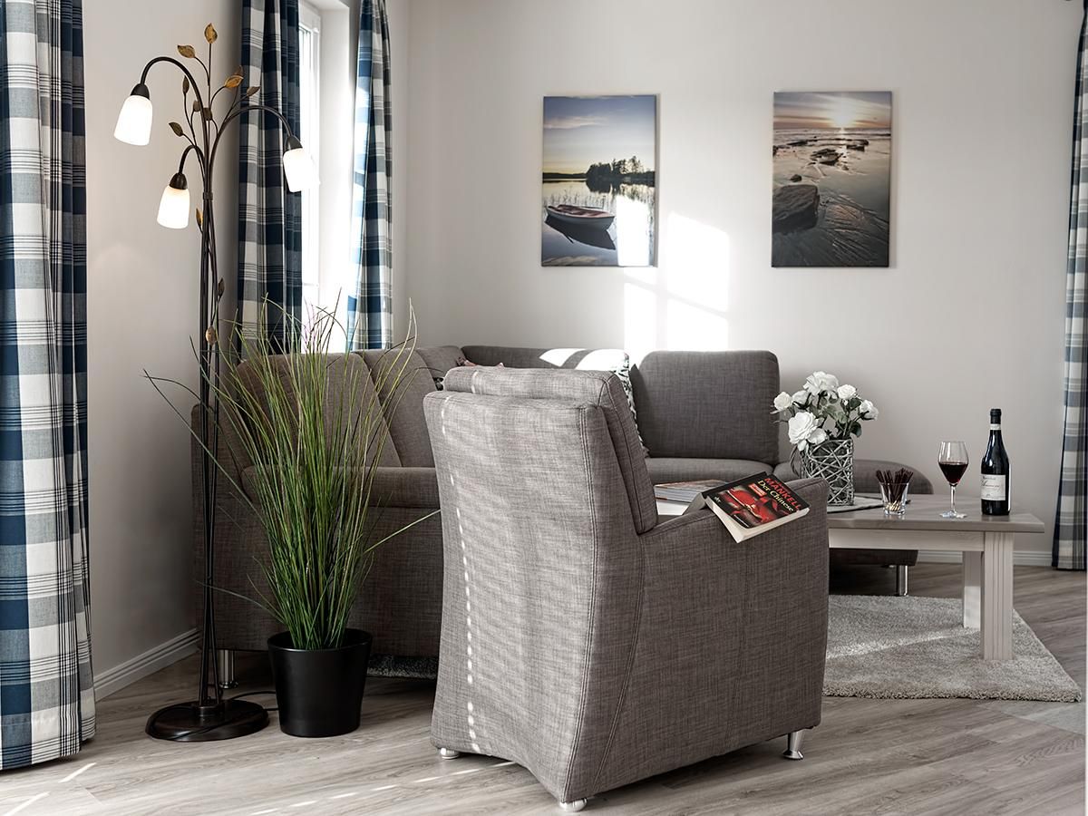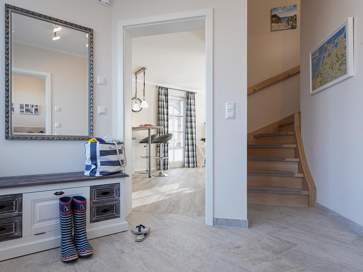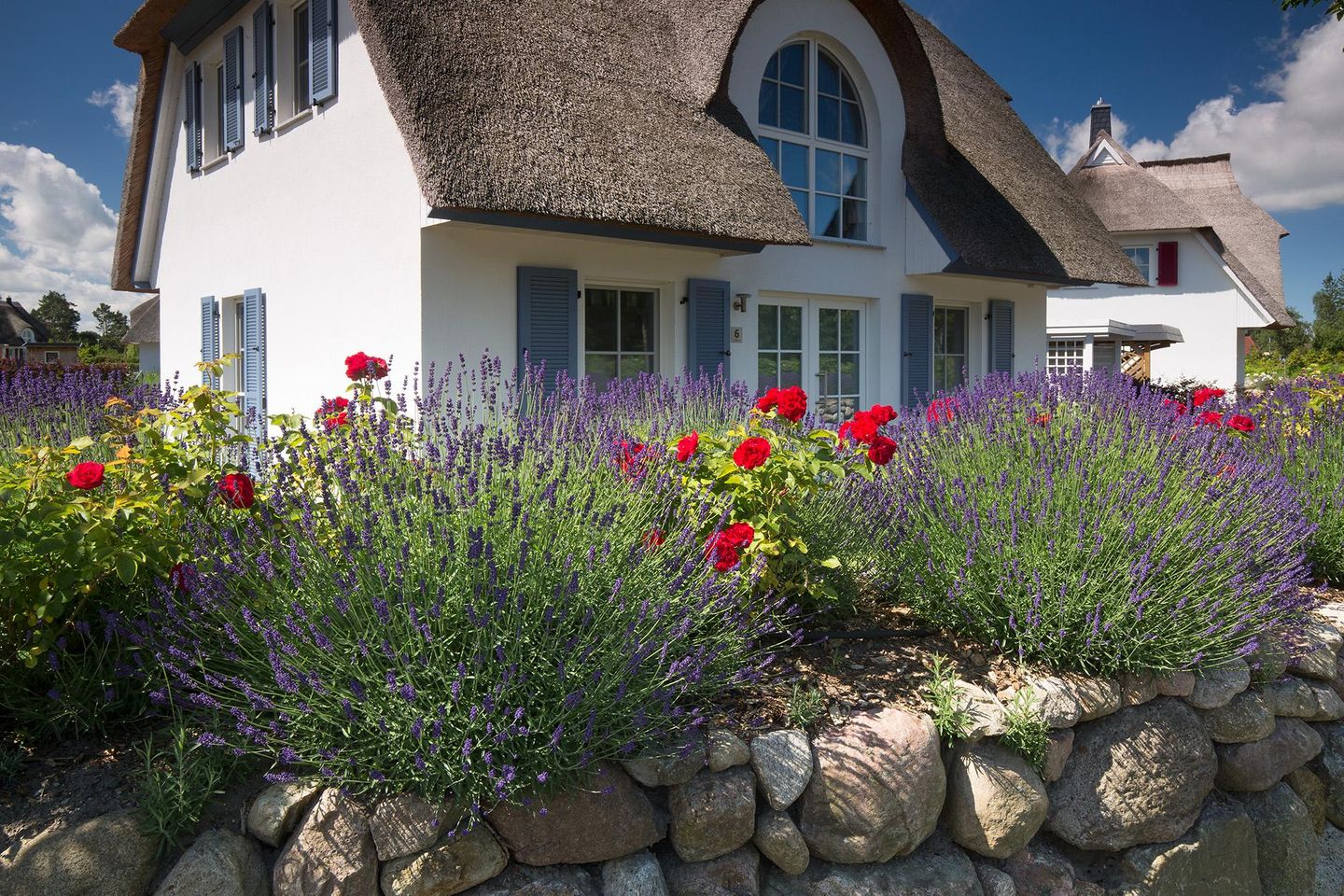 Das wunderschöne Ferienhaus mit traditionellem Reetdach, Fensterläden, ortstypischer Feldsteineinfriedung und 654 m2 großem Grundstück am Teich liegt in einer neuen Ferienhausanlage. Es bietet großzügig Platz für fünf Feriengäste (zwei Schlafzimmer mit Doppelbett, eins mit Einzelbett) und verfügt über ein Duschbad mit WC und Sauna im OG sowie ein Gäste-WC im EG.