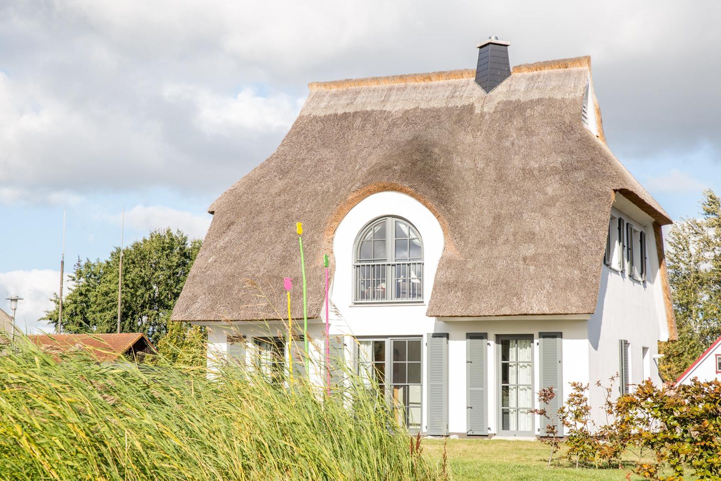 Das wunderschöne Ferienhaus mit traditionellem Reetdach, Fensterläden, ortstypischer Feldsteineinfriedung und 677 m2 großem, eingezäuntem Grundstück am Teich liegt in einer neuen Ferienhausanlage. Es bietet großzügig Platz für fünf Feriengäste (zwei Schlafzimmer mit Doppelbett, eins mit Einzelbett) und verfügt über ein Duschbad mit WC und Sauna im OG sowie ein Gäste-WC im EG.